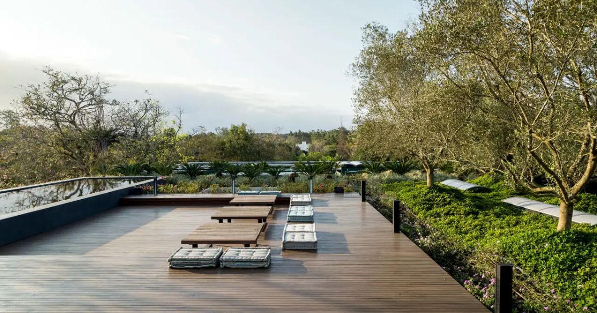 O arquiteto responsável explica que a ideia inicial era criar um espaço que proporcionasse bem-estar aos moradores ao mesmo tempo em que valorizasse a relação com a paisagem ao redor.